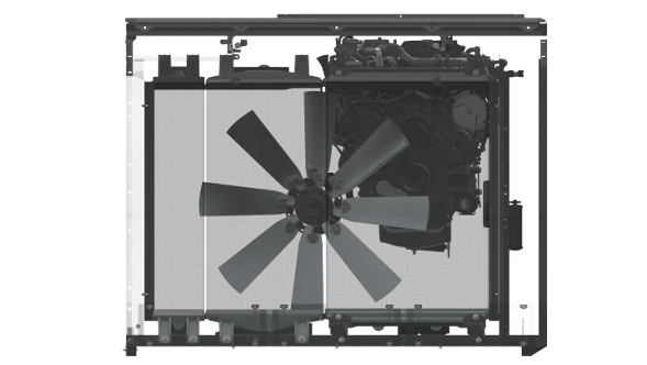 Para garantizar que los motores sean siempre eficientes y fiables, el enfriamiento es fundamental. El enfriamiento AirSense® fue desarrollado para la Fendt IDEAL. La idea: máxima capacidad de enfriamiento con el mínimo esfuerzo de limpieza. El enfriamiento AirSense® consta de un ventilador reversible de 950 mm y una superficie de enfriamiento de 2,7 m². La entrada de aire se realiza de forma centralizada a través de una rejilla del radiador situada en la parte superior de Fendt IDEAL. Dependiendo de la temperatura y el tiempo, el ventilador cambia automáticamente el sentido de giro y sopla el enfriador de forma fiable.